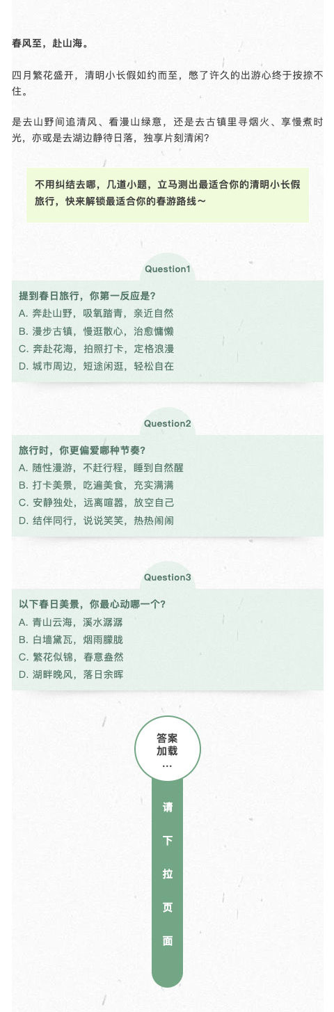 不用糾結(jié),幾道小題助你挑選完美清明假期旅行地!